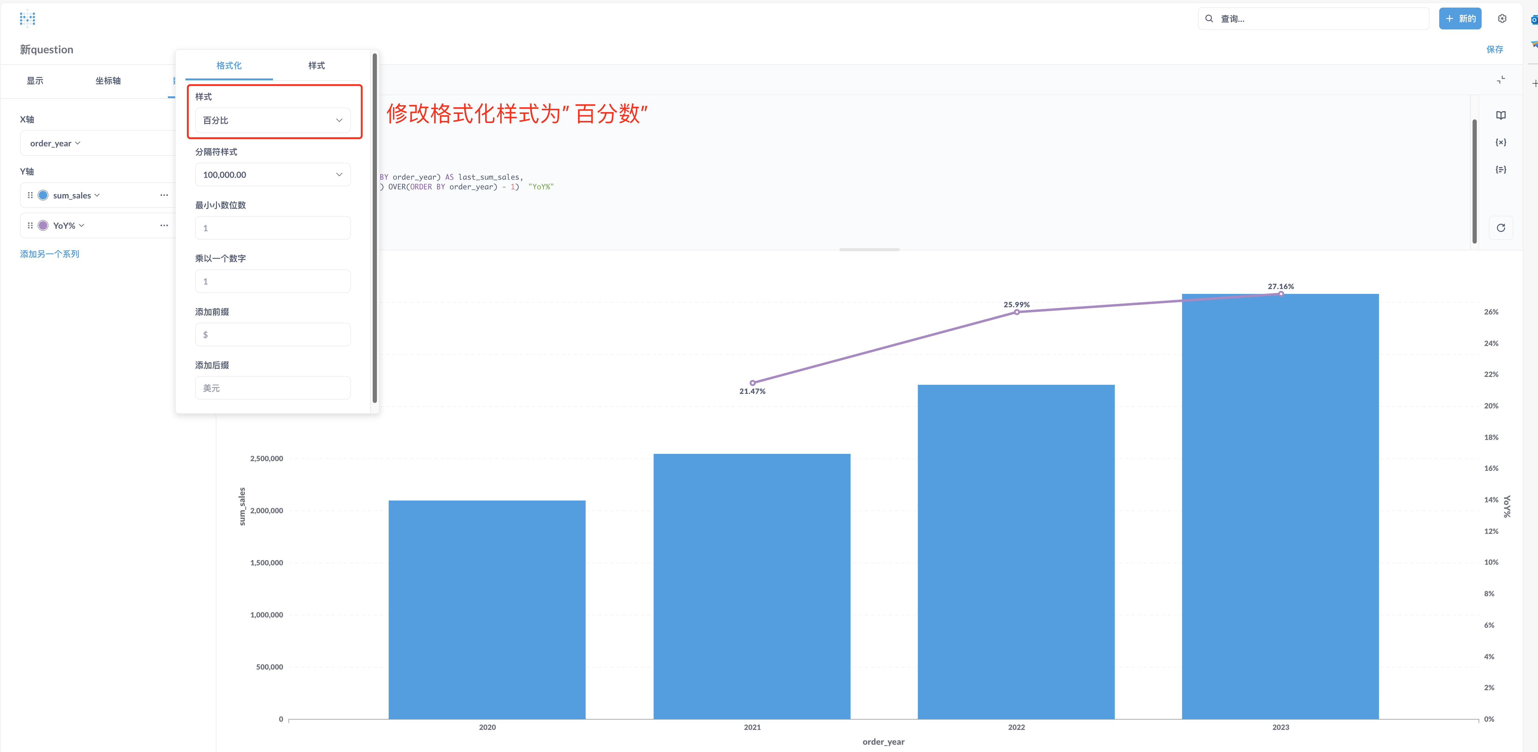 为YoY配置折线图